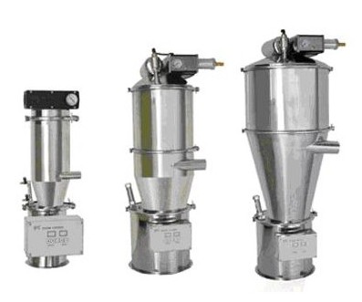 气动真空上料机是利用压缩空气通过真空发生器产生高真空实现对物料的输送,不需要机械式真空泵,具有结构简单、体积小、免维修、噪音低、控制方便、物料静电和符合GMP要求等优点。真空发声器产生的高真空,避免被输送的物料出现分层现象,保证了混合物料成分的均一性,是压片机、胶囊填充机、干法制?;盎⒎鬯榛⒄穸傅然底远狭系挠畔妊≡竦纳璞?。当压缩空气供给真空发生器时,真空发生器就产生负压形成真空气流,物料被吸入上料咀,形成物气流,经过上料管到达上料机的料仓内。过滤器把物料与空气进行分离,当物料装满料仓时,控制器会自动切断气源,真空发生器停止工作,同时料仓门自动开启,物料落到设备的料斗中。与此同时,压缩空气通过脉冲反吹阀自动清洗过滤器。等到时间到或料位传感器发出上料信号时,自动启动真空上料机。非常简单方便。