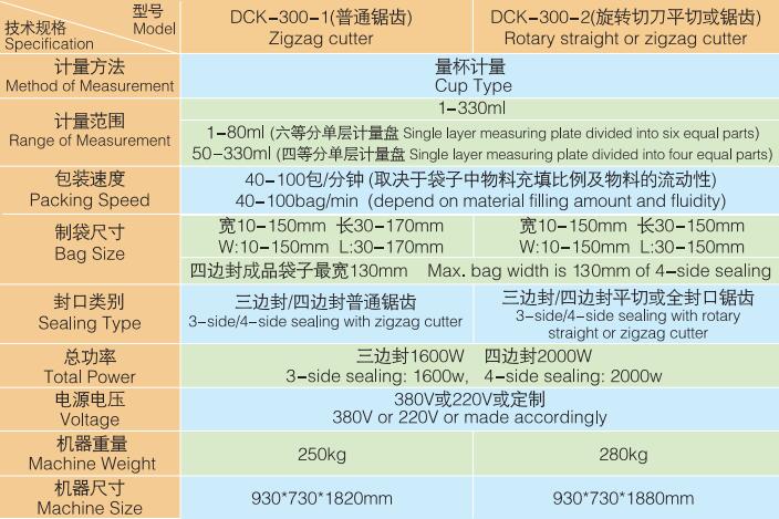 DCK-300-1/ DCK-300-2 平三边封/四边封颗粒包装机