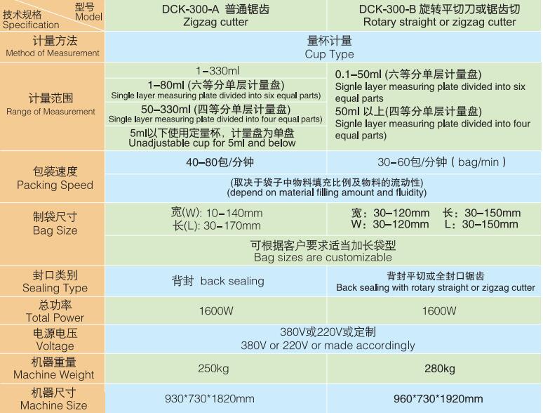 DCK-300-A/ DCK-300-B 背封颗粒包装机
